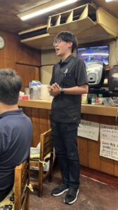 歓迎会の締めくくりとして、西山さんにこれからの意気込みを発表していただきました!