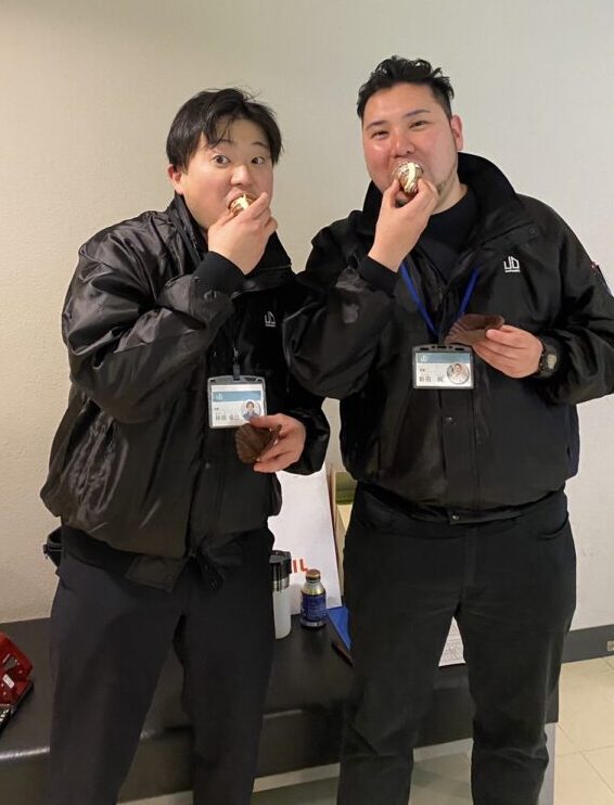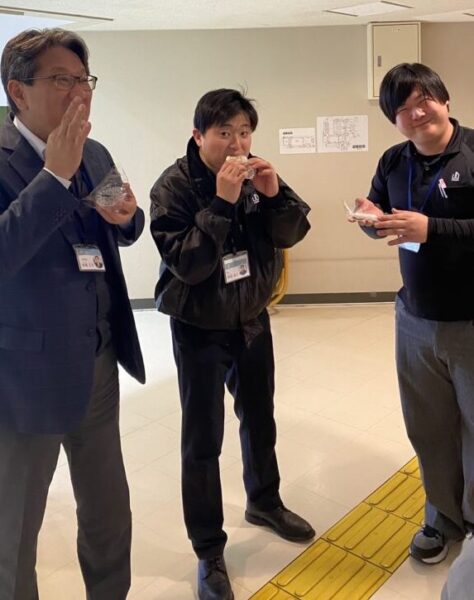こちらの写真、左から社長の魚橋、2023年12月入社の林田くん、先輩の上西くんです。