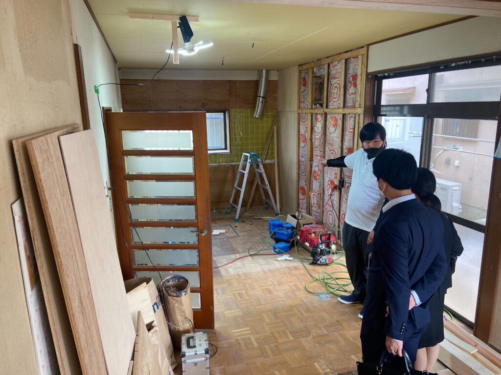 1階部分を全面的にリフォームしている只中の高砂市K様邸に行き、工事のことや営業スタッフの実際の業務内容についてお話ししました。