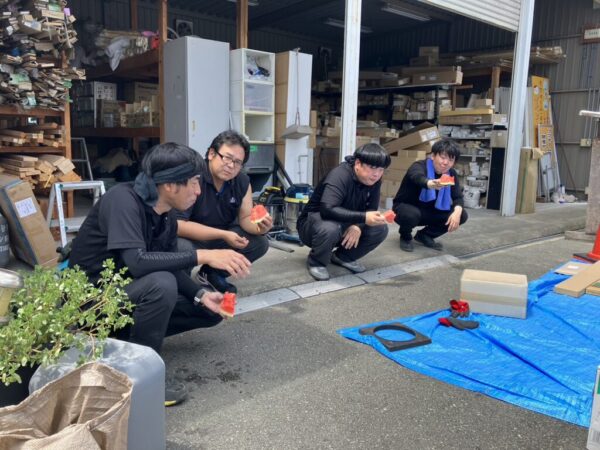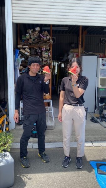 そこで、お客様からいただいたスイカを切ってスイカ休憩🙌