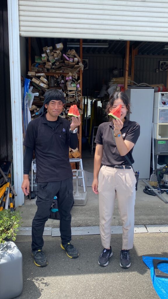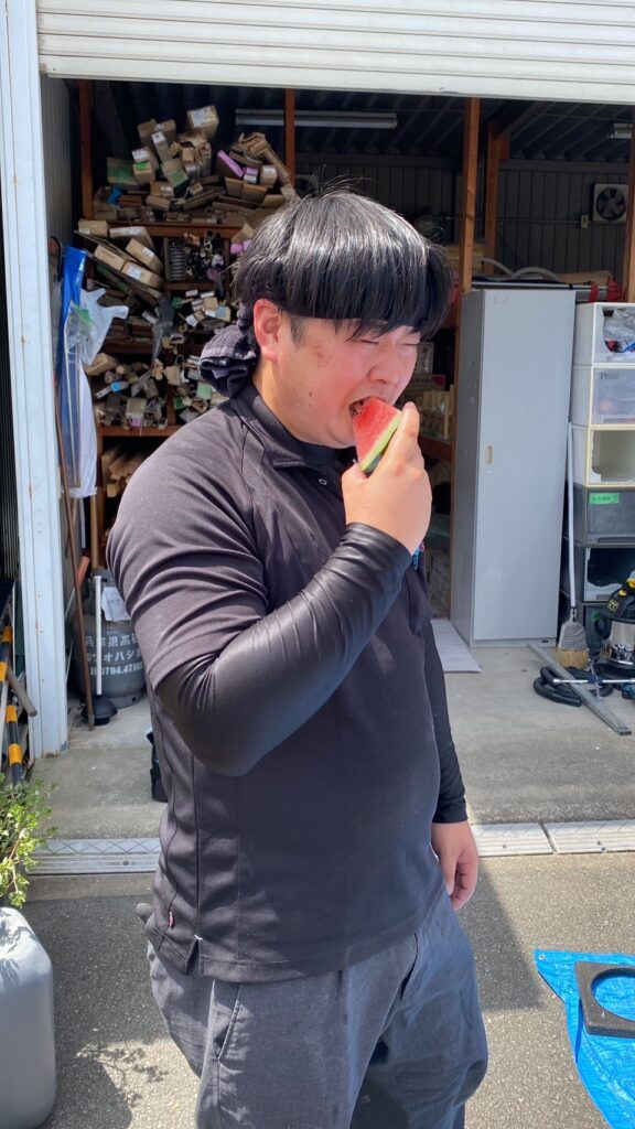 そこで、お客様からいただいたスイカを切ってスイカ休憩🙌