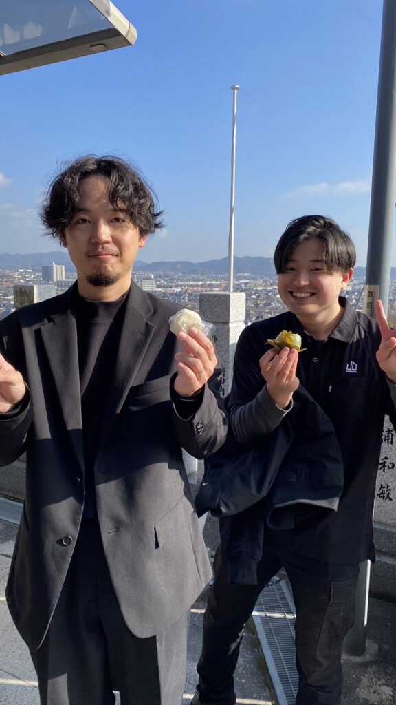 その後、「奇跡の浮石」「日本三奇」で知られる生石神社にお参りし、高砂市を一望できる素晴らしい景色の中、お餅をいただきました!