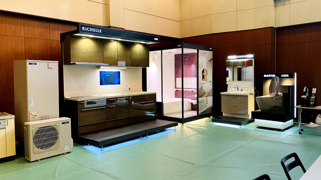 メーカーに協賛いただき、キッチンやお風呂、トイレなど展示品をずらっと並べていました。