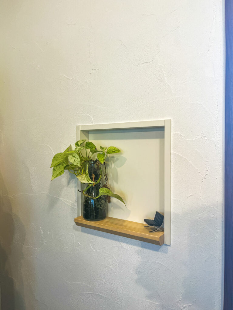 ニッチとは、壁の一部をくぼませてつくる飾りスペースのこと。グリーンや雑貨を置くだけで、空間の印象がぐっとやわらかくなります🌿
