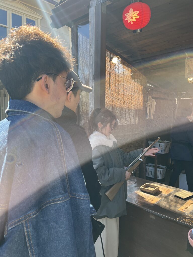 自由時間中には、射的に挑戦するスタッフの姿も。