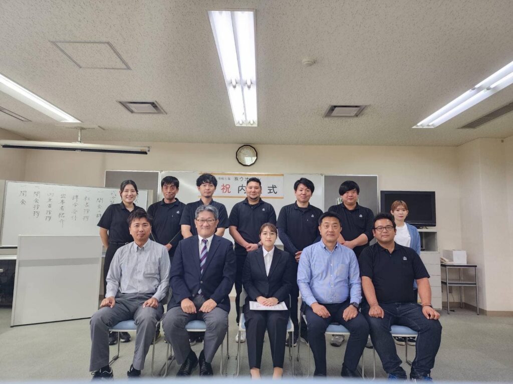 先輩たちの声掛けもあって、前田さんも緊張がほぐれ、ウオハシらしい和やかな雰囲気の中で式を終えることができました。