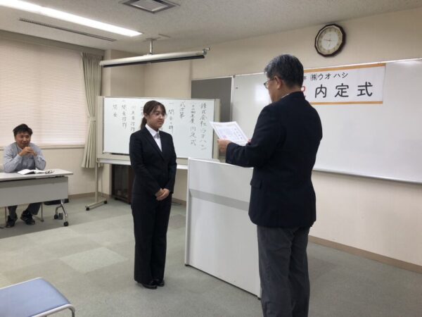 24年卒内定者の内定式を執り行いました! │ 株式会社ウオハシ
