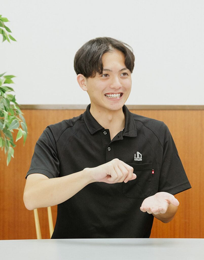 建築学部で学んでいることもあり、建築分野を仕事にしたいとは思っていたが業種も幅広く具体的になにがしたいのか決まっていなかった中で、アポ取りから引き渡しまで担当するウオハシの一気通貫のスタイルに惹かれたのが最初でした。インターンシップを通して、社員同士仲良く話しているところを見てとても会社の雰囲気の良くこの会社に入りたいと思いました。