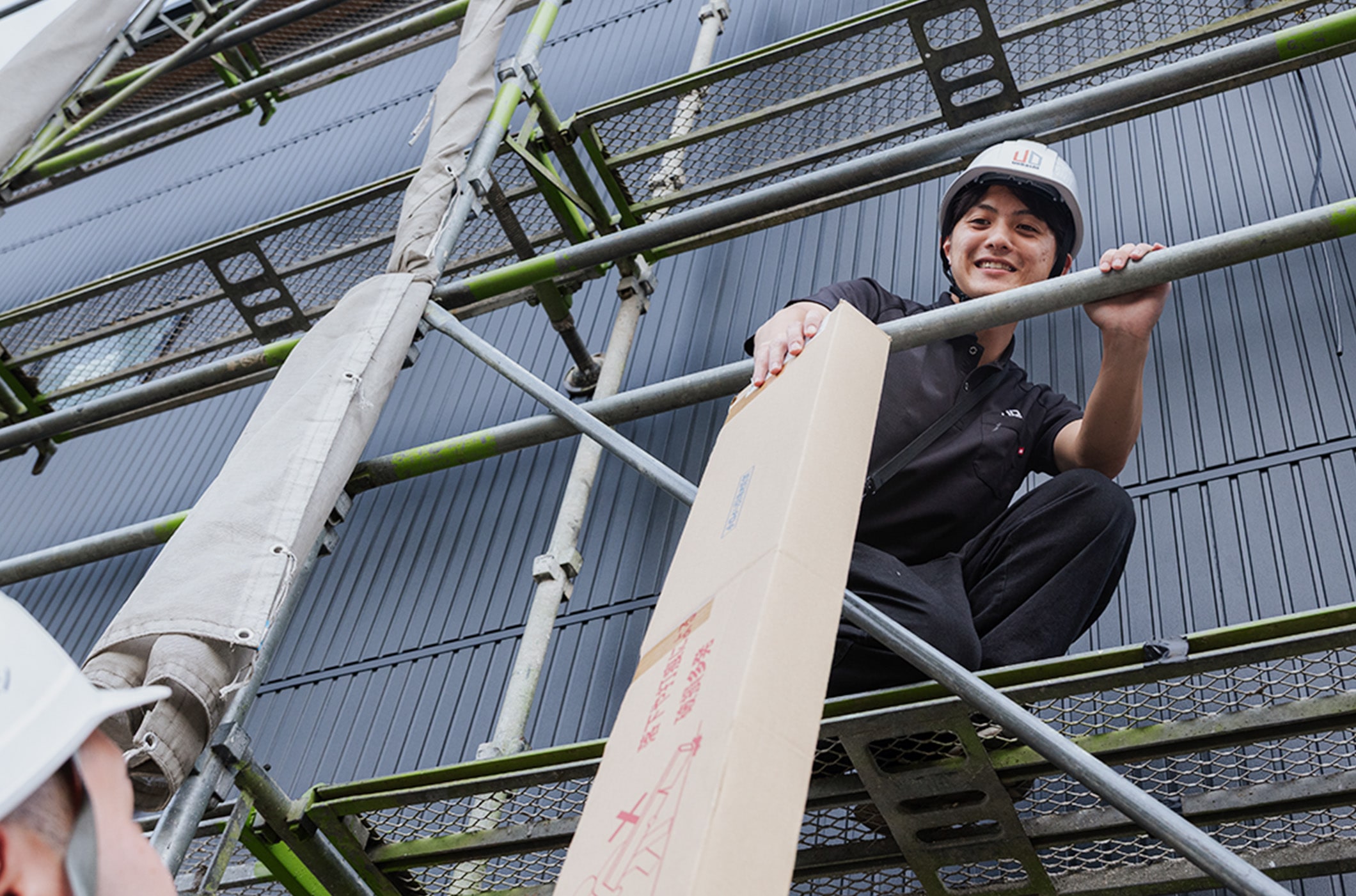 | 1年目 | 入社後は社内外の研修に参加し、リフォームアドバイザーとしての基礎を学ぶ。現在は先輩に同行しながら、営業や現場管理の実務を勉強中。 |